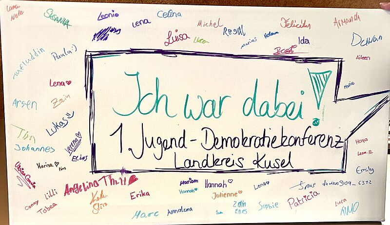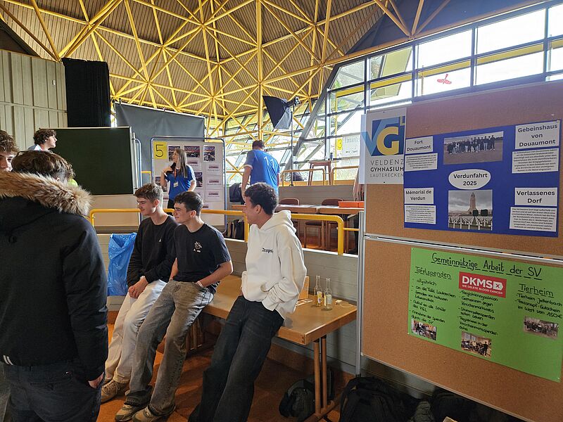 Insgesamt waren rund 140 Schüler*innen aus verschiedenen Schulen des Landkreises dabei. Schon im Vorfeld hatten wir zwei Plakate vorbereitet: eines über unseren Ausflug nach Verdun und eines über die gemeinnützige Arbeit unserer Schülervertretung. Auch andere Schulen zeigten Projekte zu Themen wie Inklusion, Vielfalt und Engagement gegen Rassismus. Zu Beginn begrüßten die Veranstalter*innen alle Teilnehmenden und erklärten das Ziel des Treffens. Danach gab es einen Input zum Jugendforum: Vertreter*innen aus Mainz waren per Videokonferenz zugeschaltet und erklärten, was ein Jugendforum eigentlich ist, welche Möglichkeiten es Jugendlichen bietet und welche Erfolge bereits erzielt wurden. Das war für viele der erste konkrete Einblick, wie politische Beteiligung in der Praxis aussehen kann. Nach den Redebeiträgen gab es eine kurze Pause, in der kostenlose Getränke und Gebäck bereitstanden. Danach begann der „Future-Walk“, eine freie Austauschphase: Jede Schule hatte Stände aufgebaut und zusätzlich präsentierten auch externe Initiativen ihre Arbeit. Viele boten Mitmachaktionen an, z. B. Glücksräder, kleine Aufgaben oder Kreativangebote. Dazwischen gab es Möglichkeiten, einfach miteinander ins Gespräch zu kommen. Wer eine Pause brauchte, konnte Tischkicker oder Billard spielen. Später wurde ein warmes Mittagessen ausgegeben, sowohl vegetarisch als auch nicht vegetarisch, sodass für jede Person etwas dabei war. Am Ende der Veranstaltung wurden die Ergebnisse der große Online-Umfrage, an der alle direkt vor Ort teilnahmen, vorgestellt, bevor die Organisator*innen eine Feedback-Runde eröffneten. Abschließend wurde bereits der erste Termin für das regionale Jugendforum bekanntgegeben: Es soll am 16. Dezember stattfinden. Wer sich vorstellen kann, eigene Ideen einzubringen oder Projekte im Kreis Kusel mitzugestalten, sollte das geplante Jugendforum im Blick behalten. Dort werden motivierte Jugendliche gesucht, die Lust haben, etwas zu bewegen – egal ob man schon Erfahrung mitbringt oder einfach nur neugierig ist. Für uns war die Konferenz eine Mischung aus politischer Bildung, Mitmachen und echtem Austausch. Besonders schön war, dass man mit vielen neuen Leuten ins Gespräch gekommen ist und gleichzeitig selbst zeigen konnte, woran wir in der SV und im Unterricht arbeiten.