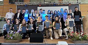 Die Rednerinnen und Redner betonten zudem die Bedeutung der Gemeinschaft, die diesen Jahrgang getragen hat – eine „schulische Familie“, bestehend aus Mitschülerinnen und Mitschülern, Lehrkräften und nicht zuletzt den Familien im privaten Umfeld. Gemeinsam habe man unterstützt, ermutigt und begleitet. Mit Blick auf die Zukunft wurde den Abiturientinnen und Abiturienten vor allem eines mitgegeben: Vertrauen – in sich selbst, in andere und in das Leben. In einer zunehmend komplexen Welt seien Mut, Zuversicht und Verantwortungsbewusstsein entscheidend. Gleichzeitig wurde dazu ermutigt, sich diese positive Haltung zu bewahren und auch Verantwortung für die Gesellschaft zu übernehmen.