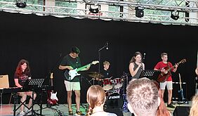 Es folgte eine Ansprache durch Leonie Brill (10b) und Emilie Theis (10a), die als Moderatorinnen durch den Abend führten, bevor zahlreiche talentierte Solisten die Bühne übernahmen, darunter Moritz Jung (9b) und Paula Kochte (9a) am Klavier sowie Pauline Margies (MSS 12), die neben ihrem Talent für die Tasten ebenfalls mit ihrem gefühlvollen Gesang zu einer Eigeninterpretation von Bruno Mars‘ „When I was your man“ überzeugte. Auch die beiden ehemaligen Schülerinnen Madeline Weichel und Lea Sophie Gräf nutzten als Sängerinnen erfolgreich ihre Chance, die abgesagten Konzerte aus der Coronazeit nachzuholen.
