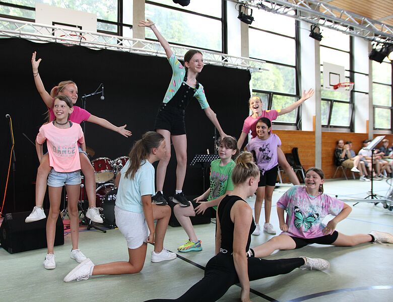 Herausstach der Musik-Grundkurs der MSS11 mit einer ungewöhnlichen „Body Percussion“ zu Edvard Griegs „In der Halle des Bergkönigs“. Auch die seit diesem Schuljahr eingerichtete Tanz-AG (Teilnehmende aus 5a und 6b) überzeugte mit ihrer Choreografie zu Elton Johns „I’m still standing“ und ließ die Tänzerinnen strahlen.