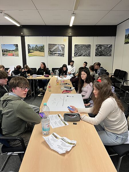 Im Anschluss an die Führung fuhren wir weiter nach Bonn. In der Kantine des Bundesministeriums der Verteidigung erwartete uns ein warmes Mittagessen. Nach der gemeinsamen Mittagspause begaben wir uns in das Tagungszentrum Hardthöhe, wo wir in Gruppen verschiedene Arbeitsaufträge bearbeiteten.Die Aufgaben befassten sich unter anderem mit dem Aufbau und der Funktion des Regierungsbunkers während seiner aktiven Nutzung, mit aktuellen Gefahren, auf die ein Staat vorbereitet sein sollte, mit der Planung moderner Schutzanlagen in Deutschland sowie mit der Frage, ob der Bau solcher Bunker heute sinnvoll und gewinnbringend für die Gesellschaft wäre. Abschließend wurden die Ergebnisse der Gruppenarbeit gemeinsam vorgestellt und diskutiert.