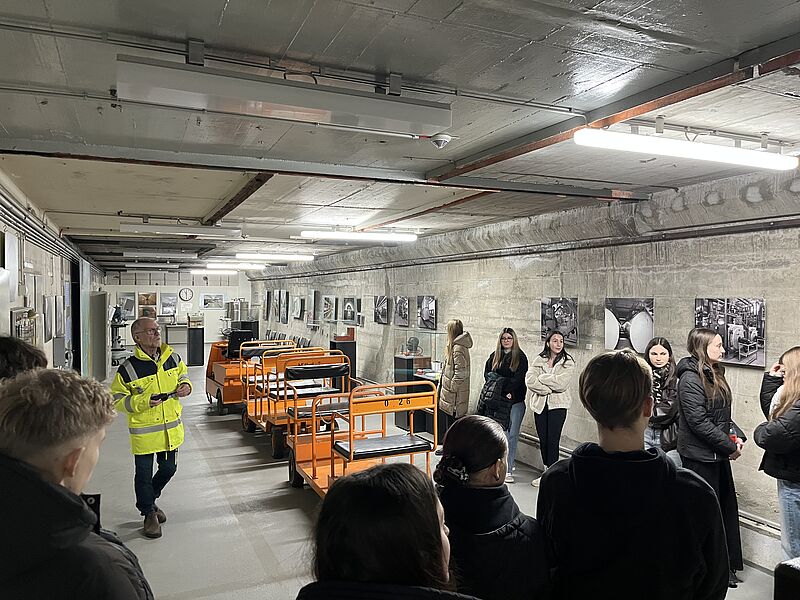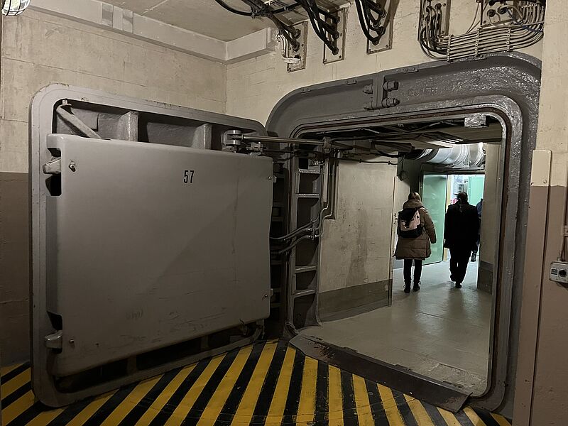 Die eigentliche Exkursion begann am folgenden Tag um 7:25 Uhr an der Bushaltestelle der RS+ unter der Leitung von Herrn Pick, Frau Burckhardt und Frau Hauptmann Bischoff. Gegen 10:00 Uhr erreichten wir nach etwa zweieinhalb Stunden Fahrt die Dokumentationsstätte Regierungsbunker in Ahrweiler. Dort erhielten wir eine informative Führung durch den ehemaligen Regierungsbunker, der nach der Wiedervereinigung zu einem Museum umfunktioniert wurde. Die Ausstellung veranschaulicht durch original erhaltene Kommandozentralen, Schlaf- und Dekontaminationsräume sowie Büroräume eindrucksvoll die Organisation und Funktionsweise des Bunkers zu Zeiten des Kalten Krieges. Der Regierungsbunker wurde zwischen 1960 und 1972 in zwei stillgelegten Eisenbahntunneln im Ahrtal errichtet und diente als Ausweichsitz der Verfassungsorgane des Bundes. Die Anlage war insgesamt rund 17 Kilometer lang und bestand aus einem weitverzweigten Tunnelsystem mit zahlreichen Querschlägen und Sicherheitsschleusen. Im Ernstfall hätten dort bis zu 3.000 Personen – darunter Mitglieder der Bundesregierung, des Bundestages sowie wichtige Verwaltungsmitarbeiter – für etwa 30 Tage autark überleben können. Der Bunker verfügte über eine eigene Strom- und Wasserversorgung, Notstromaggregate, Luftfilteranlagen zum Schutz vor atomaren, biologischen und chemischen Gefahren sowie über medizinische Versorgungsräume. Auch Schlafräume, Küchen, Sanitäranlagen, Fernmeldezentralen und ein vollständig ausgestatteter Kabinettssaal waren vorhanden. Ziel war es, im Falle eines nuklearen Angriffs die Handlungsfähigkeit des Staates sicherzustellen und die demokratische Ordnung der Bundesrepublik Deutschland aufrechtzuerhalten.