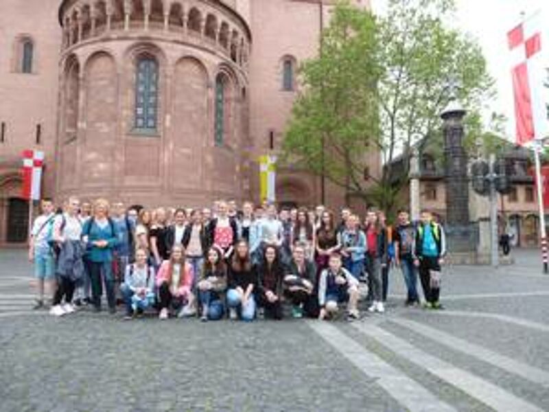 Donnerstag sind wir mit dem Bus nach Mainz gefahren. Zuerst ging es am Rheinufer entlang zum Museum für antike Schifffahrt, wo wir eine Führung hatten und danach in Richtung Dom. Hier haben die polnischen und auch einige deutsche Schülerinnen und Schüler den Mainzer Dom St Martin auch von innen besichtigt.