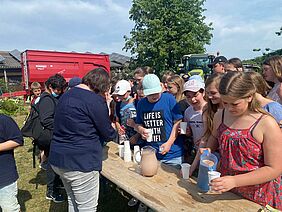 Dieser Ausflug wurde von Frau Genschow und Frau Latterner geplant. Als die SchülerInnen ankamen, machten sie nach dem Fußmarsch vom VGL zum Hof zuerst eine kleine Pause. Danach wurden sie in drei Gruppen eingeteilt und ihnen wurden die Maschinen, der Anbau, die Biogasanlage und der Bullenstall gezeigt. Die Bullen durften auch gefüttert und gestreichelt werden. Die zwei Ferkel „Schwenker“ und „Fackelchen“ waren eines der Highlights. Die SchülerInnen durften auch schätzen, wie viel die Maschinen wiegen, was für einige Überraschung sorgte. Zum Schluss gab es noch ein Picknick mit Muffins und Kakao, bevor der Heimweg ans VGL angetreten wurde. Es war ein sehr interessanter und gelungener Ausflug!