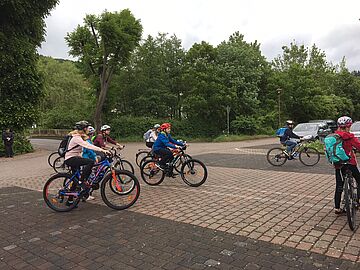 Nach ca. eineinhalb Stunden und einer 13 Kilometer andauernden Strecke mit dem Fahrrad durch den Wald und über Radwege standen wir vor dem Berg der Jugendherberge in Wolfstein. Mit viel Motivation ging es den steilen Berg, der 11 Prozent Steigung inne hatte, nach oben. Doch leider hatten nur drei Schüler die Kraft, es ganz nach oben auf den Berg, ohne vom Fahrrad absteigen zu müssen, zu schaffen. Als wir unser Ziel, die Jugendherberge, erreichten, gab es erst mal ein leckeres Mittagessen. Anschließend bezogen wir unsere schönen 3-5 Bett-Zimmer. Am Nachmittag blieben die drei Klassen mit ihren Klassenleitern unter sich, um - angeleitet durch die Betreuer - gruppendynamische Spiele zu absolvieren. Die Klasse 7a baute eine Stadt, die Klasse 7b kletterte und die 7c ging auf der Lauter paddeln.