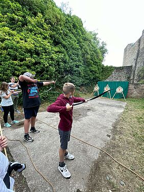 Am dritten Tag machten sie einen Ausflug zur Burg Lichtenberg. Im Rahmen eines „ritterstarken Tages“ mit geschulten Teamern schossen sie dort mit Pfeilen, spielten verschiedene teambildende Spiele (Rätsel, die gemeinsam gelöst werden mussten; Slackline-Parcours; Hufeisenwerfen usw.), hatten eine Stunde Mittagspause, in der sie die Burg besichtigen konnten und bastelten Ledersäckchen, wie die Leute sie früher hatten. Leider zog gegen Ende ein Gewitter auf und sie mussten sich schnell auf den Weg zum Bus machen.