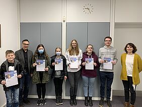 An sechs Teilnehmende konnte Schulleiter Herr Weber mit Frau Schlachter am 26.01.2022 dabei Preise verleihen. Einen zweiten Preis erreichten Elias Nagel (6a), Melissa Gehm (7a) und Thea Cloß (7a). Für herausragende Leistungen konnten Lisa Molter, Leonardo Schunck und Chiara Bentz (alle MSS 13) mit einem ersten Preis ausgezeichnet werden. Herzlichen Glückwunsch zu dieser großartigen Leistung!