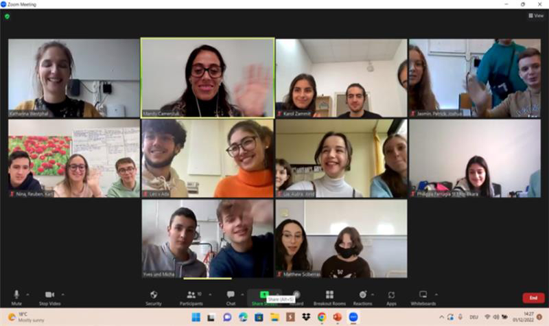 In einem nächsten Schritt präsentierten beide Gymnasien ihre Imagefilme. Der Leistungskurs Englisch hat hierfür den Imagefilm des VGL auf Englisch vertont. Darüber hinaus erstellten die Schülerinnen Aušra Dilba, Jorid Janke und Madeleine Roland ein englisches Erklärvideo zum deutschen Schulsystem, welches den Maltesern ebenfalls präsentiert wurde. Ein besonderer Dank gilt Yves Nekola, der den aufwändigen Schnitt der Filme übernommen hat. Nach der Präsentation der Filme bot sich für die Schülerinnen und Schülern in Breakout-Räumen Zeit für den persönlichen Austausch. Jede Gruppe bestand aus 2-3 maltesischen und 2-3 deutschen Schülerinnen und Schülern, die sich gegenseitig Fragen zu den zuvor präsentierten Imagefilmen stellten. Doch nicht nur die Imagefilme wurden auf Englisch und Deutsch diskutiert – die Jugendlichen fanden schnell Gemeinsamkeiten und tauschten sich auch über andere interessante und privatere Themen aus. Gegen Ende der Sitzung wurde unter der gelungenen Moderation von Leo Zureikat der Spieleklassiker Taboo auf Englisch und Deutsch gespielt. Nach einer kurzen Reflexionphase gaben Frau Camenzuli und Frau Westphal einen Ausblick auf weitere Schritte und Projektideen zum Thema „Global citizenship“ – Perspektiven einer Welt- und Wertegemeinschaft.