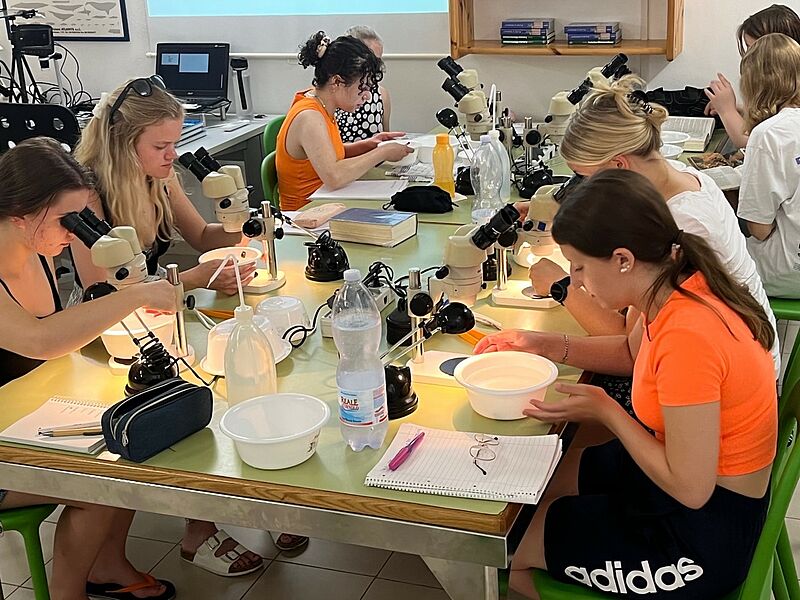 Am darauffolgenden Tag trafen wir uns um 9 Uhr im Institut, um einen intensiven Tag der praktischen Arbeit zu beginnen. In den nächsten vier Stunden bearbeiteten wir zwei praktische Aufgaben. Zuerst erhielten wir verschiedene Meeresorganismen, die wir mikroskopierten und identifizierten. Dies erforderte die Verwendung von wissenschaftlichen Meeresbiologie-Büchern, um herauszufinden, um welche Arten es sich handelte und wo sie in den verschiedenen Meeresabschnitten zu finden waren. Im zweiten Teil untersuchten wir Wasser- und Sandproben, die wir ebenfalls mikroskopierten. Dabei entdeckten wir eine erstaunliche Vielfalt kleiner Lebewesen, die direkt am Strand lebten. Diese Proben waren voller Leben und zeigten die erstaunliche Vielfalt des Meereslebens.