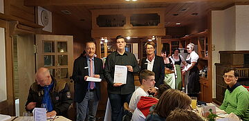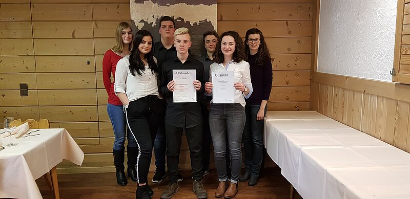 Gemeinsam fuhren die Gewinner-Teams nach Kaiserslautern und besichtigten Lager, Labor und Produktion der dort ansässigen Firma Swif, die z. B. Raumerfrischer für die Eigenmarken von bekannten deutschen Drogeriemarkt-Ketten herstellen. Anschließend fuhren wir zum Landgut Jungfleisch, wo wir zu Mittag aßen und auch die Preisverleihung des Planspiels Börse stattfand.