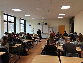 Die Schüler stellten viele Fragen, die Herr Jung (unser Bild) alle beantwortete. So machte er seinen Standpunkt klar, indem er darlegte, dass populistische Parteien nicht wirkliche Lösungen anböten, sondern lediglich Probleme oder vermeintliche Probleme im Staat lautstark aufzeigten. Er räumte jedoch ebenfalls ein, dass die Politik und der Staat im Falle der massiven Flüchtlingsströme in den Jahren 2015/2016 Fehler gemacht habe. Nach Herrn Jung sei die AfD eine Partei, die durchaus einzelne Punkte besitze, in denen sie auch Recht habe, allerdings in anderen Punkten dermaßen im Unrecht sei, dass sie für ihn unwählbar wären. Im Folgenden beschäftigte die Gruppe die Frage des Brexit sowie der Zusammenhalt in der EU und zwischen den europäischen Staaten. Herr Jung machte uns klar, dass es wichtig sei für die EU einzustehen, und dass ein Handeln wie das von Großbritannien absolut falsch sei. Er meinte, eine anti-europäische Einstellung sei vor dem Hintergrund der furchtbaren Folgen des Nationalismus im letzten Jahrhundert katastrophal. Jeder sollte die Lehren aus den beiden Weltkriegen ziehen und für dieses große Projekt eines gemeinsamen Europas einstehen und es unterstützen. Auch berichtete er von Lügen, die während der Brexit-Abstimmung verbreitet wurden, um das Verlassen Großbritanniens zu befeuern und die Wähler für sich zu gewinnen. Abschließend beschäftigte die Schüler noch die Frage des Lobbyismus in Deutschland und sie erfragten die Meinung von Herrn Jung zu diesem Thema.