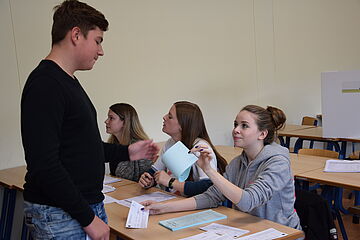 Das Wahllokal hatte drei Stunden geöffnet, in denen die insgesamt 130 Wahlberechtigten zu jeweils vorgegeben Zeiten ihr Kreuzchen machen konnten. „Diese Form der Durchführung ist zwar nicht ganz wie in der Realität, erleichtert aber die Organisation an der Schule, an der nebenbei noch der normale Schulbetrieb läuft“, so die Sozialkundelehrerin Helena Giegerich. Vorher wurde der Ablauf der Wahl sowie die programmatische Ausrichtung der Parteien im Unterricht thematisiert.