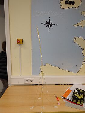 Zunächst wurde die Aufgabe gestellt, wer den höchsten Turm bauen kann. Dabei standen den Schülerinnen und Schülern 20 Spaghetti, ein Meter Klebeband und ein Marshmallow, welches als Spitze des Turmes fungieren sollte, zur Verfügung. Innerhalb von 25 Minuten konnte eine Gruppe sogar einen Turm mit einer Höhe von 93 cm bauen. Die nächste Aufgabe bestand darin, ein Ei so zu schützen, dass dieses einen Sturz aus dem Fenster heil übersteht. Fast alle Flugobjekte sahen dabei einen Fallschirm sowie einen zusätzlichen Schutz für das Ei vor, sodass die Lernenden sehr viele positive Ergebnisse vorweisen konnten. Anschließend beschäftigten sich die Schülerinnen und Schüler mit der Fragestellung, wer denn das meiste Gas, welches beim Lösen einer Brausetablette in Wasser entsteht, auffangen kann. Als letzte Aufgabe sollte noch eine möglichst stabile Brücke aus lediglich 5 Blättern Papier gebaut werden.