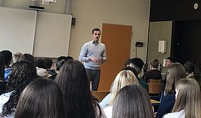 Doch zu Beginn lernten wir Herrn Mieves und seinen Begleiter kennen und genauso durften wir uns den beiden in einer kleinen Fragerunde vorstellen. Nach der Vorstellungsrunde erzählte uns Matthias Mieves, wie er zur Politik kam und über seine erste ,,politische“ Aktion in seinem Heimatsort Miesau. So sammelte er 5.000 Unterschriften, um das Miesauer Schwimmbad sanieren zu lassen.