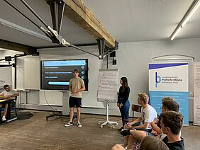 Im Anschluss hatten die Teilnehmenden anderthalb Stunden Zeit für verschiedene Workshops, darunter „Schweigen“, „informelles Zeichnen“ und „Zukunftswerkstatt“. Auch ein Actionbound durch die Dauerausstellung wurde angeboten, deren Besuch jedoch allen Gruppen offenstand. Die Exkursion wurde mit einer abschließenden Besprechung abgerundet und stellt insgesamt eine große Bereicherung für die demokratische Erziehung der Lernenden dar.