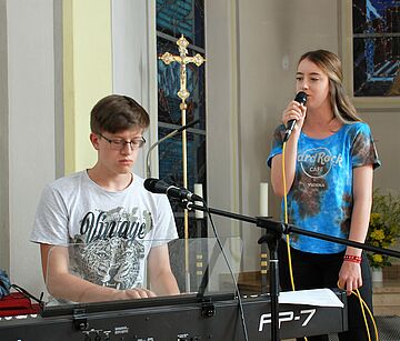 Besondere musikalische Akzente setze Lea-Sophie Gräf mit gefühlvoll vorgetragenen Liedern in Begleitung von Dennis Mack am E-Piano. Die gemeinsam gesungenen Lieder der Schulgemeinde begleitete Dr. Königstein an der Orgel. Im Religionsunterricht vor den langen Sommerferien hatten die Schülerinnen und Schüler selbst Texte zu den Maskottchen unter Berücksichtigung des Themas Freundschaft verfasst und eingeübt. Sicher werden diese dazu beitragen, dass den „Neuen“ ein Stückchen ihrer Unsicherheit bei dem großen Schritt in einen neuen Lebensabschnitt genommen wird.