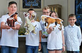 Der Gottesdienst stand unter dem Thema „Freundschaft“ und bezog sich mit seinem Thema „Voll die krasse Herde“ auf die Maskottchen für die neuen 5. Klassen aus dem Comicfilm „Ice Age“, die zu Beginn ihrer Freundschaft schwierige Abenteuer bestehen müssen. Pfarrerin Myriel Müller und Orientierungsstufenleiterin Marion Roth-Bauer hatten die Feier vorbereitet und gemeinsam mit Schülerinnen und Schüler des Veldenz Gymnasiums gestaltet.