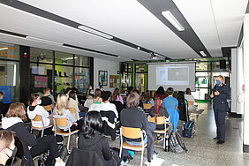 Im Kontext dieser Woche fand am VGL am Montag, dem 2. Mai, ein Vortrag zum Thema „Wieder Krieg in Europa – Der Krieg in der Ukraine“ statt, an dem die MSS 11 sowie die Klasse 10a teilnahmen. Gestaltet wurde der Vortrag mit anschließender Diskussion von Frau Franziska Fiack aus Saarlouis. Sie ist Jugendoffizierin der Bundeswehr und ausgewiesene Expertin im Bereich der Sicherheits- und Europapolitik.