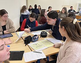 Um das Vorgehen und den Verlauf einer Verfolgung durch die geheime Staatspolizei besser nachvollziehen zu können, folgte in der 2. Arbeitsphase eine hochinteressante Quellenarbeit mit der unveränderten Fotokopie einer originalen Gestapo-Akte. Vorgelegt wurde uns das besagte Dokument über einen Herrn Bruno Paul Kloppot, der auf Grund mehrerer Verbrechen und Ungepflogenheiten in das Visier der NS-Behörden geraten war. Um uns nicht völlig in der Quelle zu verlieren, gab man uns gewisse Leitfragen vor, die unsere Arbeit strukturieren sollten und die es im Nachfolgenden zu beantworten galt: In der ersten von insgesamt vier ging es direkt um den Terminus der „Asozialität“ bzw. darum, wann dieser zum ersten Mal in der Akte auftauchte. Dazu fanden wir heraus, dass ein militärischer Vorgesetzter Kloppots ihn bereits in einem Bericht auf Seite 1 wegen der Weigerung, sich